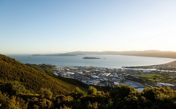 The view over Seaview and Wellington harbour from Wainui Lookout at the top of the Super Plus trail.